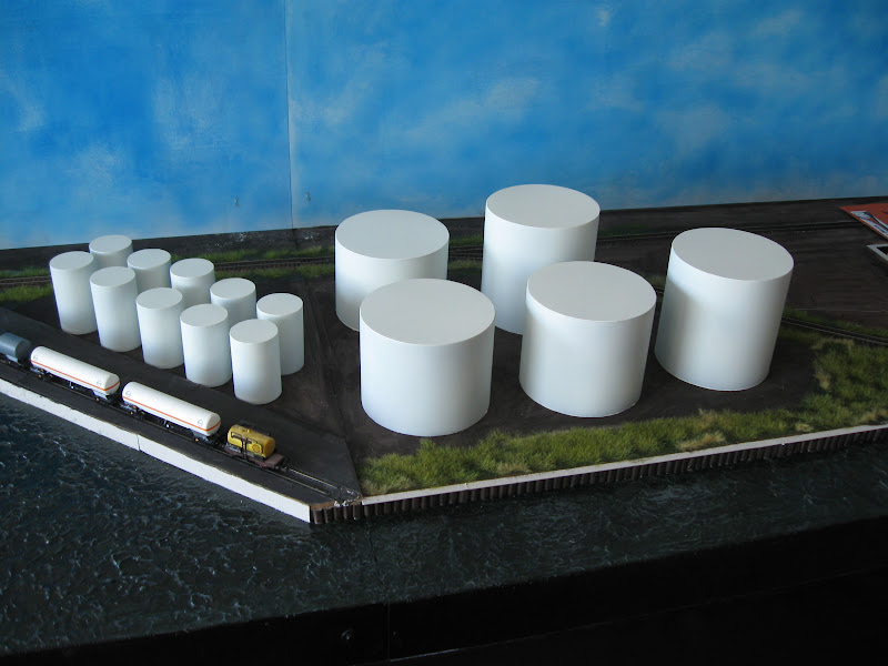 De rok hangt nu ook onder de modelbaan. En er is een begin gemaakt met de nieuwe opslagtanks die ook veel groter zijn.
