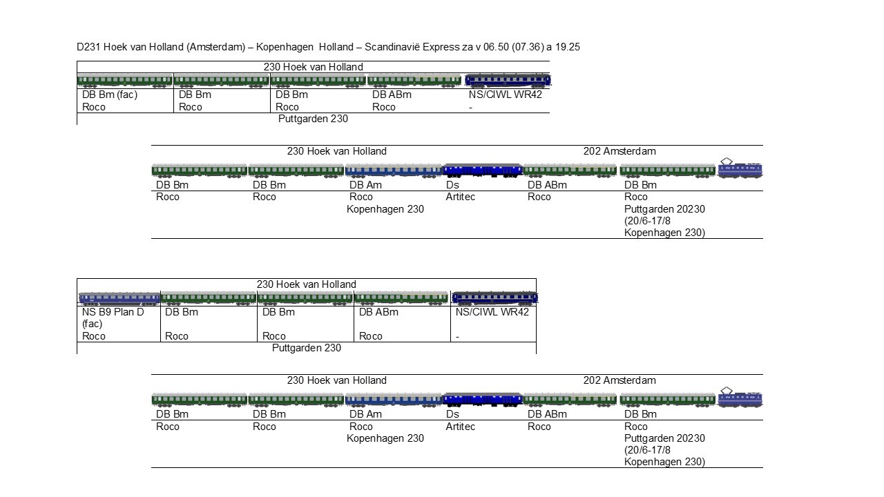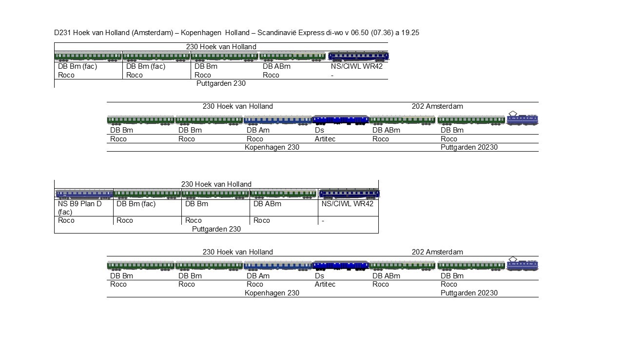 Tegentrein van de hierboven genoemde D230 is de D231, Holland - Scandinavië Expres. Dit stelt de zomersamenstelling voor, net als de voorgaande plaatjes van de D230 trouwens.